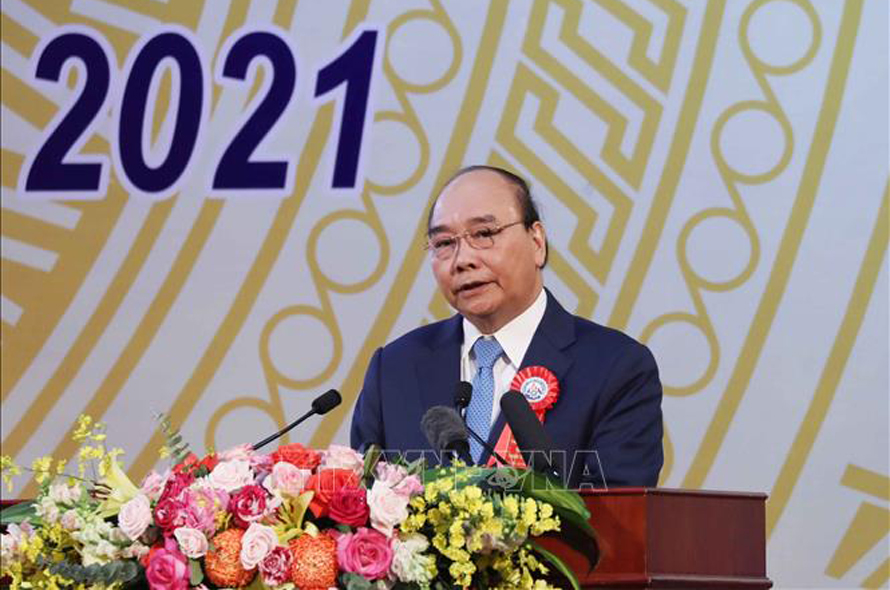 Chủ tịch nước Nguyễn Xuân Phúc phát biểu tại buổi lễ. Ảnh: Thống Nhất/TTXVN