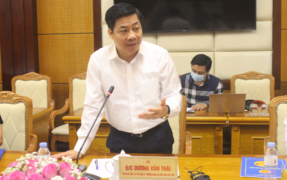 Phát biểu tại buổi làm việc, đồng chí Dương Văn Thái thông tin, đợt dịch Covid-19 lần thứ tư đã tác động, ảnh hưởng đến mọi mặt đời sống. Với quan điểm nhất quán, chủ động, Tỉnh ủy, UBND tỉnh đã triển khai đồng bộ, quyết liệt, sáng tạo, linh hoạt, kịp thời, hiệu quả các nhiệm vụ giải pháp để vừa khống chế, đẩy lùi dịch bệnh, vừa đưa các hoạt động KT-XH trở lại trạng thái bình thường mới.