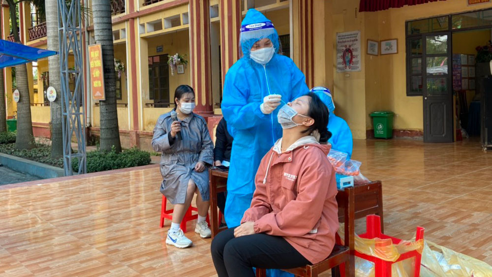 Nhân viên y tế lấy mẫu xét nghiệm Covid-19 cho học sinh xã Hương Vĩ (Yên Thế). |