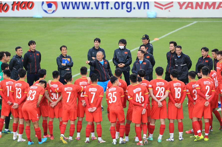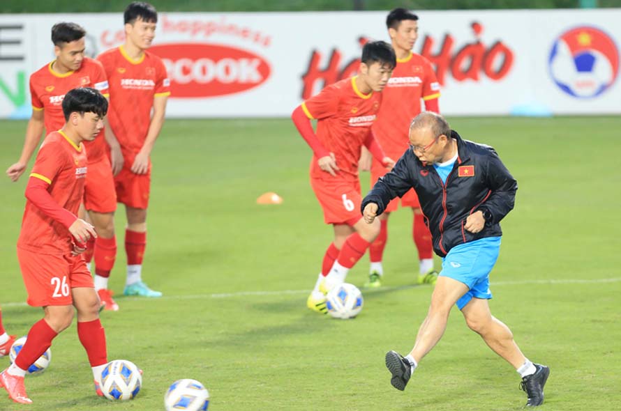 HLV Park Hang-seo căn dặn các học trò trước buổi tập. (Ảnh: VFF)