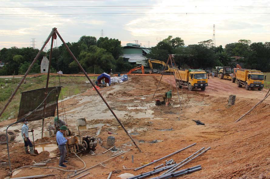 Có mặt bằng, các nhà thầu thi công đã huy động phương tiện, tập kết nguyên vật liệu, nhân công triển khai làm nền, xử lý đất yếu, cải tạo kênh mương… tổng giá trị khối lượng thực hiện đạt 56 tỷ đồng.