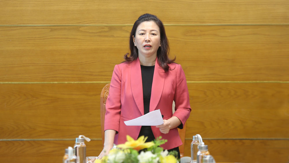 Đồng chí Lê Thị Thu Hồng phát biểu tại buổi làm việc với lãnh đạo huyện Yên Dũng. |