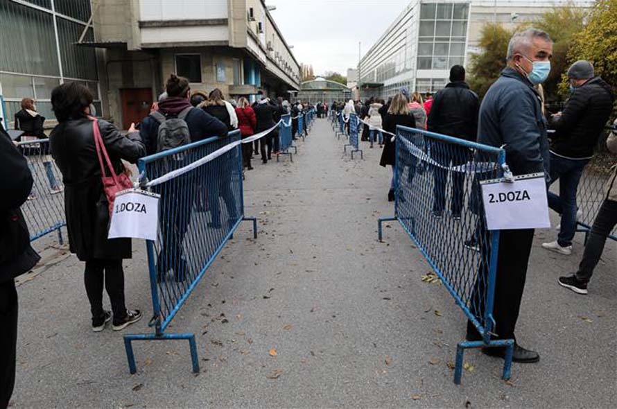 Người dân xếp hàng chờ tiêm vaccine phòng COVID-19 tại Zagreb, Croatia, ngày 6/11/2021. Ảnh: THX/ TTXVN