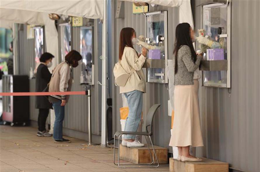 Nhân viên y tế lấy mẫu xét nghiệm COVID-19 cho người dân tại Seoul, Hàn Quốc, ngày 6/11/2021. Ảnh: Yonhap/ TTXVN