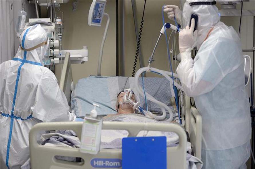 Nhân viên y tế điều trị cho bệnh nhân nhiễm COVID-19 tại bệnh viện ở Saint Petersburg, Nga. Ảnh: AFP/TTXVN