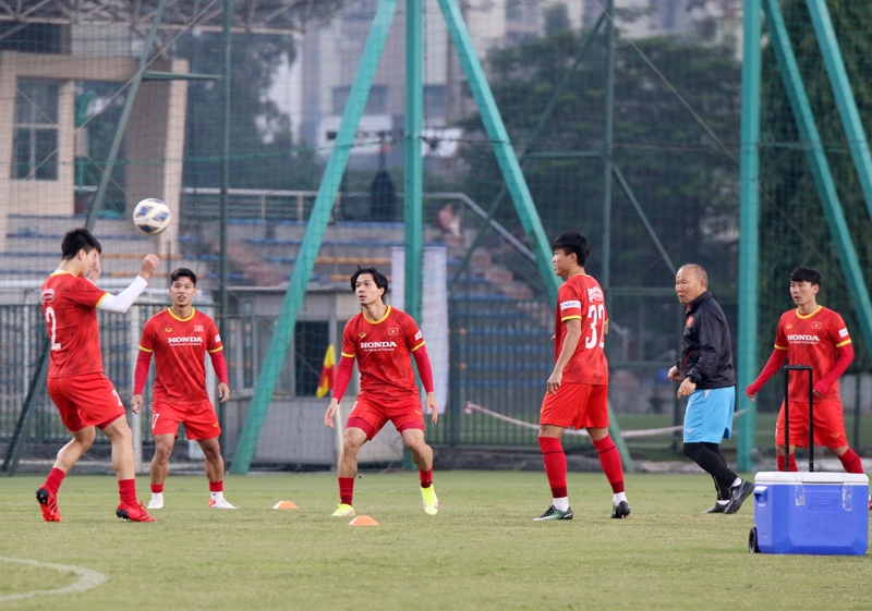 | Huấn luyện viên Park Hang-seo theo sát các bài tập của học trò. Ảnh: VFF. |