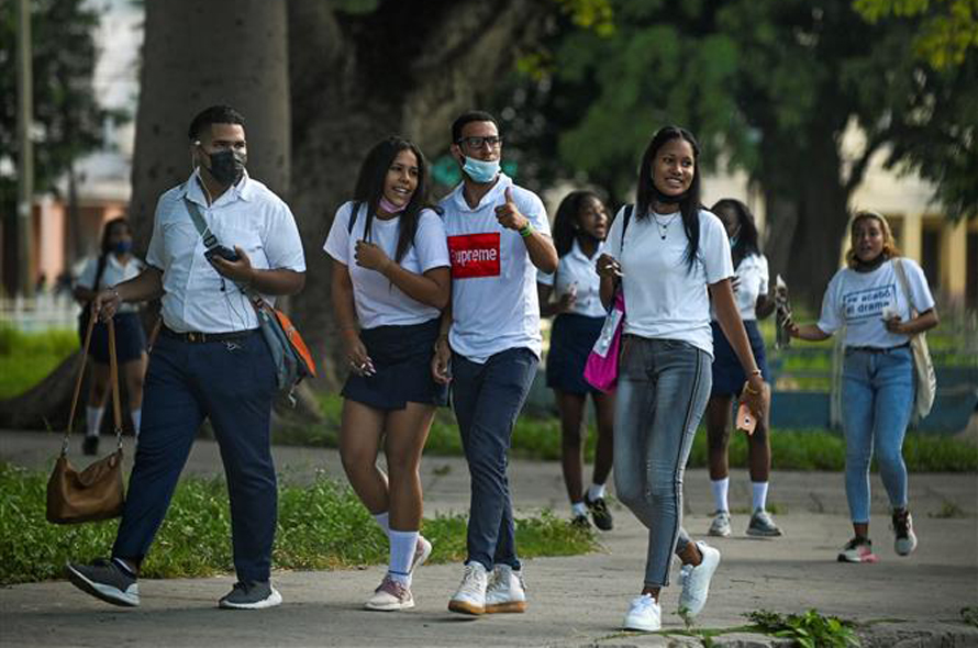 Học sinh tới trường tại La Habana, Cuba ngày 4/10/2021. Ảnh: AFP/TTXVN