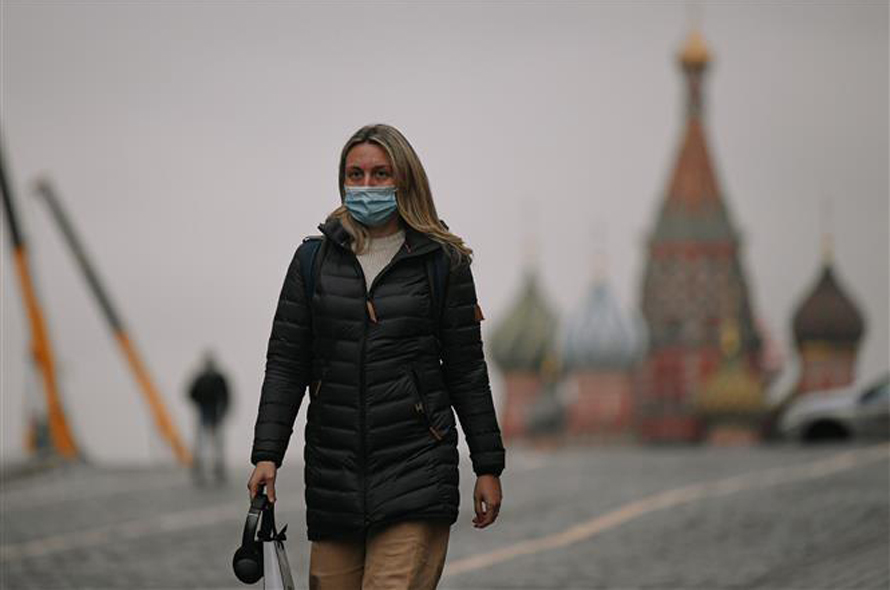Người dân đeo khẩu trang phòng dịch COVID-19 tại Moskva, Nga ngày 11/11/2021. Ảnh: THX/TTXVN