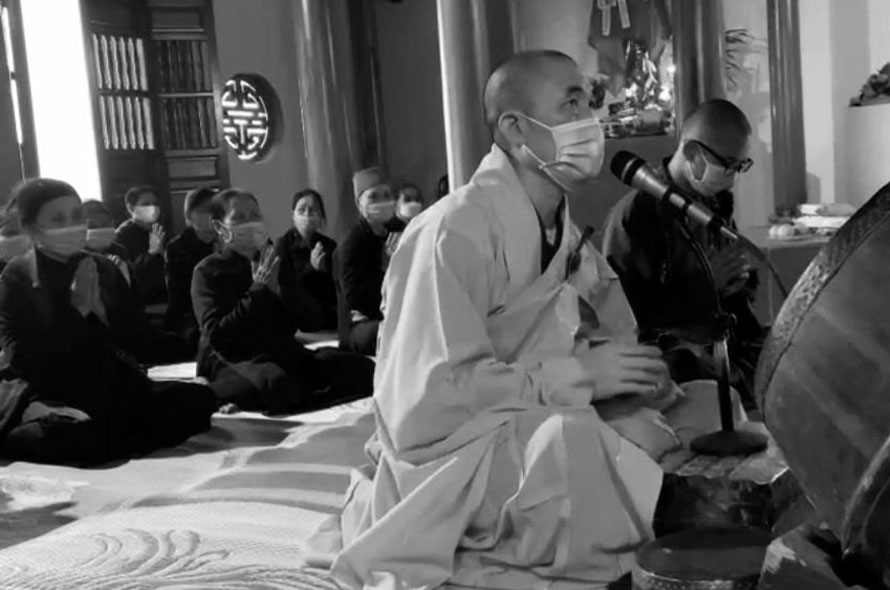 Đại đức Thích Thanh Vịnh, Phó Trụ trì chùa Vĩnh Nghiêm (Yên Dũng) làm lễ cầu siêu cho các vong linh.