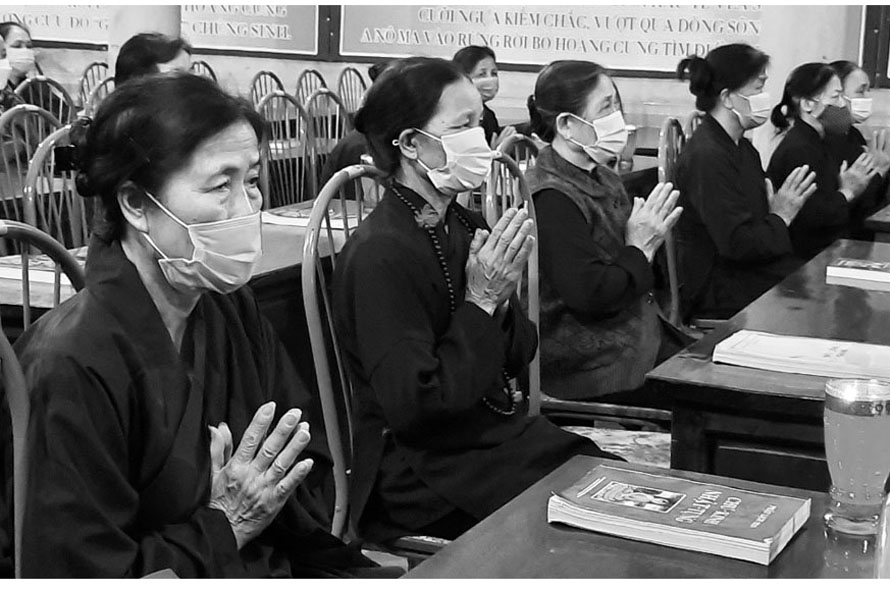 Phật tử tụng kinh tại chùa Hồng Phúc (TP Bắc Giang).