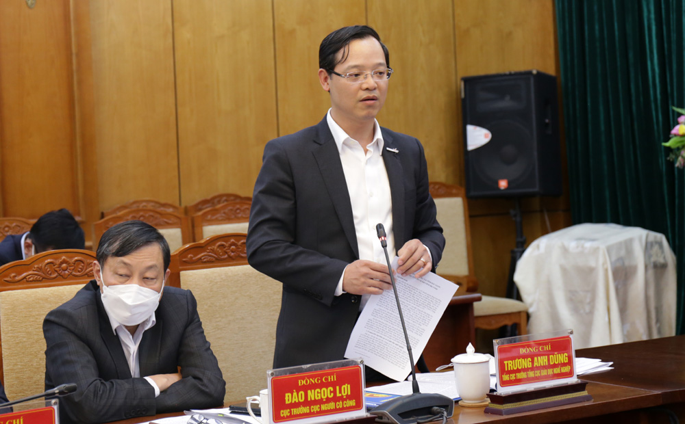 Đồng chí Trương Anh Dũng, Tổng Cục trưởng Tổng Cục Giáo dục nghề nghiệp phát biểu tại buổi làm việc. |