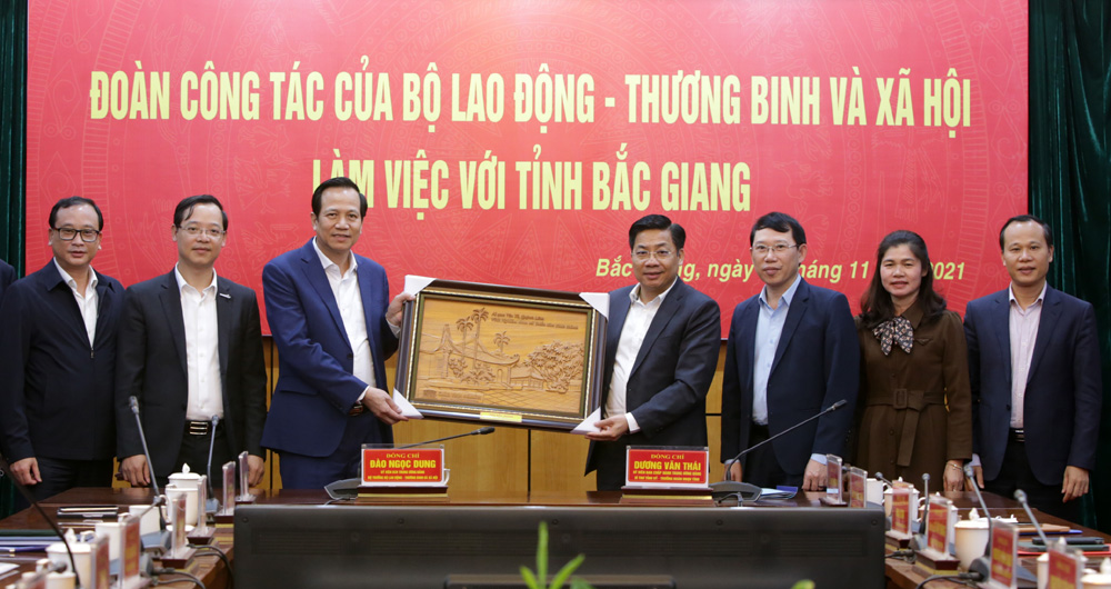 Khẳng định phát triển kinh tế phải đi liền với tiến bộ, công bằng xã hội, làm sao để người dân vừa là đối tượng tham gia công cuộc đổi mới đồng thời là người thụ hưởng, Bộ trưởng mong muốn tỉnh Bắc Giang tập trung phát triển kinh tế đi đôi với thực hiện các giải pháp phòng ngừa, giảm thiểu, ngăn chặn rủi ro. Quan tâm chăm lo đối tượng người có công, bảo trợ, yếu thế. Ngoài thực hiện đúng, đủ, nhanh chính sách đối với người có công, tỉnh cần thành lập tổ công tác có sự tham gia của Bộ để giải quyết dứt điểm tồn đọng hiện nay về hồ sơ liệt sĩ.