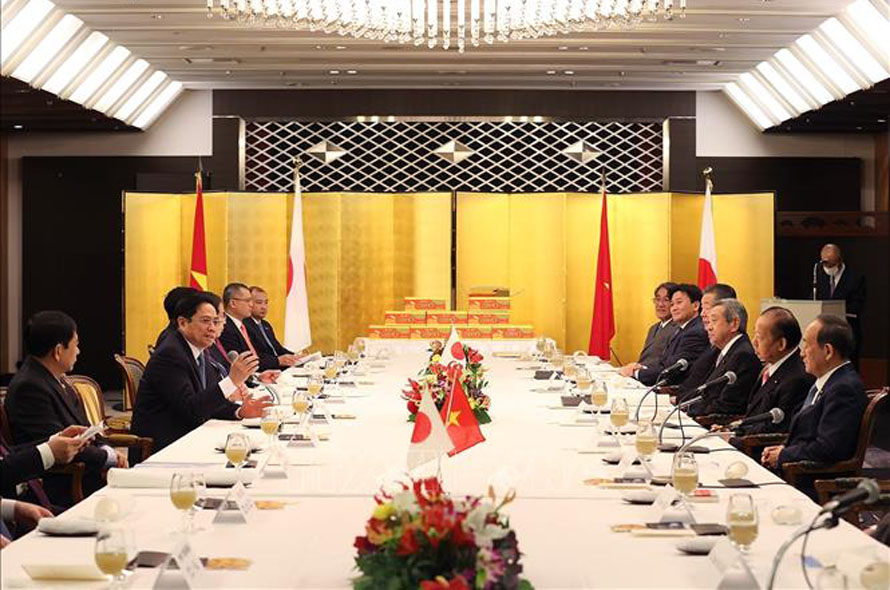 Theo đặc phái viên TTXVN, sáng 23/11, tại Tokyo, Nhật Bản, trong chuyến thăm chính thức đầu tiên tới Nhật Bản, Thủ tướng Phạm Minh Chính đã tiếp cựu Thủ tướng Nhật Bản Suga Yoshihide; cựu Tổng Thư ký đảng Dân chủ Tự do (LDP), Chủ tịch Liên minh Nghị sĩ hữu nghị Nhật - Việt Nikai Toshihiro và các thành viên Liên minh.