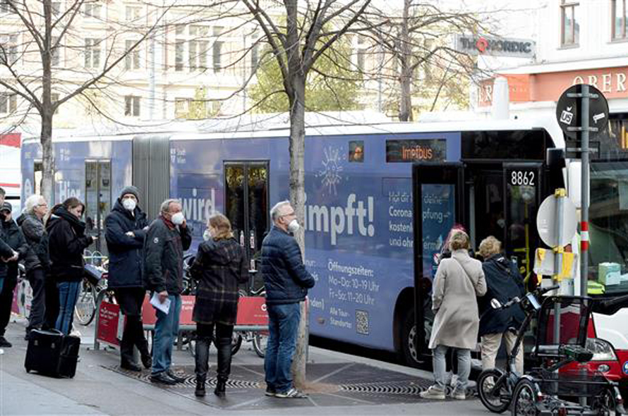 Người dân xếp hàng chờ tiêm vaccine phòng COVID-19 tại Vienna, Áo, ngày 10/11/2021. Ảnh: THX/ TTXVN
