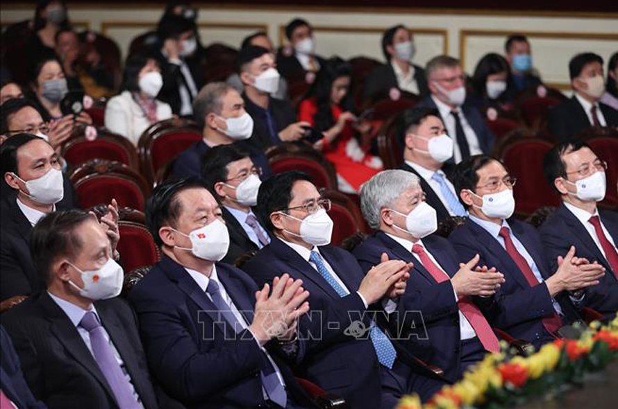 Thủ tướng Phạm Minh Chính và các đại biểu tham dự buổi lễ. Ảnh: Dương Giang/TTXVN