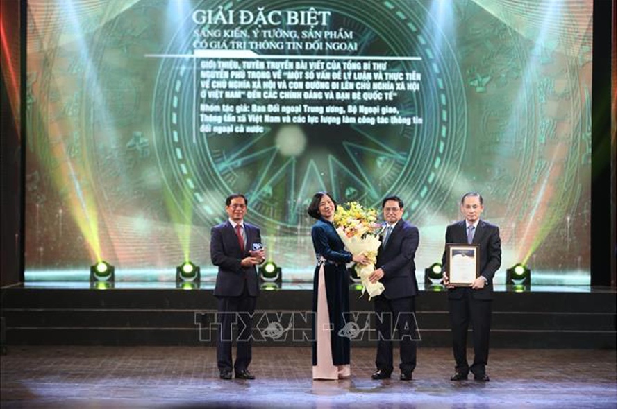 Giải Đặc biệt được trao cho ý tưởng “Giới thiệu, tuyên truyền bài viết của Tổng Bí thư Nguyễn Phú Trọng về “Một số vấn đề lý luận và thực tiễn về chủ nghĩa xã hội và con đường đi lên chủ nghĩa xã hội ở Việt Nam” đến các chính đảng và bạn bè quốc tế” của Ban Đối ngoại Trung ương, Bộ Ngoại giao, Thông tấn xã Việt Nam và các lực lượng làm công tác thông tin đối ngoại. Với ý nghĩa đặc biệt quan trọng, phản ánh tầm tư tưởng, lý luận và thực tiễn của bài viết, trong bối cảnh Đảng ta đang tập trung triển khai việc thực hiện Nghị quyết Đại hội XIII, các đơn vị đã triển khai dịch bài viết này ra nhiều thứ tiếng, giới thiệu, tuyên truyền đến các chính đảng và bạn bè quốc tế, góp phần khẳng định rõ hơn về con đường cách mạng của Việt Nam, lan tỏa những thành tựu mà toàn Đảng, toàn quân và toàn dân đã được trong quá trình đi lên chủ nghĩa xã hội, đồng thời nâng cao vị thế, uy tín của Việt Nam trên trường quốc tế.