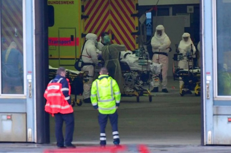 Vận chuyển 1 bệnh nhân mắc Covid-19 lên máy bay "Medevac" của lực lượng không quân Đức Bundeswehr tại Hamburg, ngày 28/11. (Ảnh: Reuters)