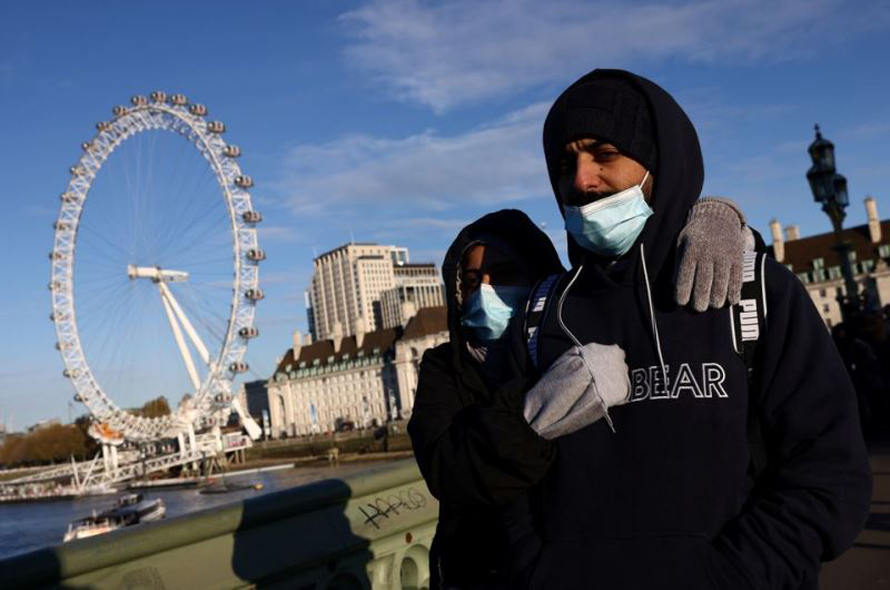 Người dân Anh đeo khẩu trang đi bộ qua cầu Westminster ở London, ngày 28/11. (Ảnh: Reuters)