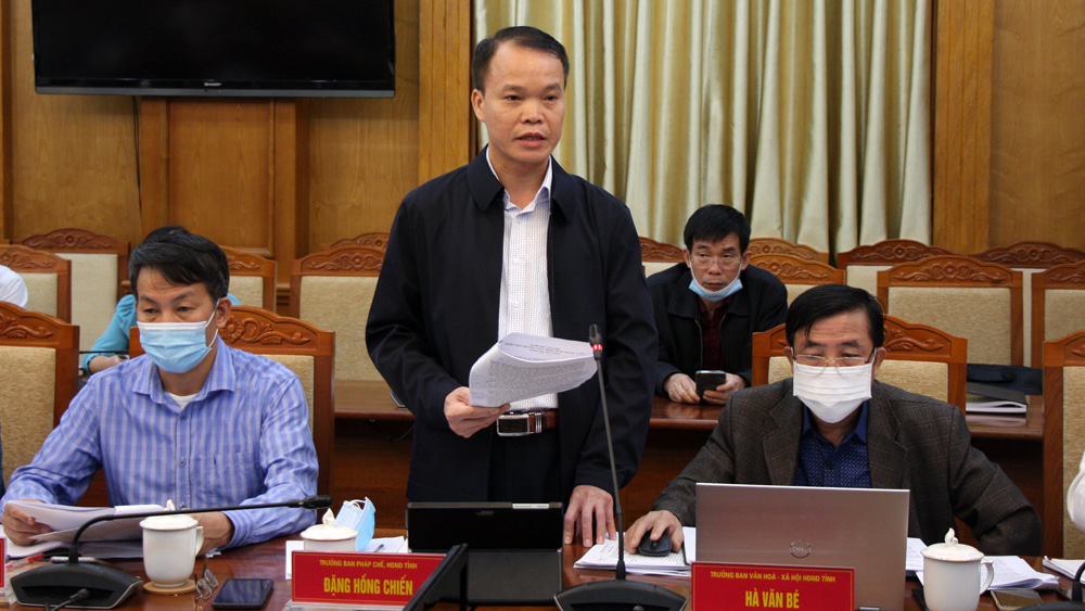 Lĩnh vực văn hóa - xã hội có 12 kiến nghị của cử tri do Thường trực HĐND tỉnh chuyển đến đã được UBND tỉnh xem xét, giải quyết. Đồng chí Hà Văn Bé, Trưởng Ban Văn hóa - Xã hội nêu: UBND TP Bắc Giang lắp đặt biển tên cho 2 tuyến đường Trần Nguyên Hãn 1, Trần Nguyên Hãn 2 theo đề nghị của cử tri phường Thọ Xương. Tuy nhiên, nội dung này chưa được HĐND tỉnh thông qua. Vì vậy, đề nghị UBND tỉnh chỉ đạo UBND TP Bắc Giang sớm hoàn thành việc rà soát tổng thể các tuyến đường; đồng thời hoàn thành việc xây dựng Đề án đặt tên đường phố đúng quy định của pháp luật để trình HĐND tỉnh thông qua. Đồng chí đề nghị UBND tỉnh chỉ đạo Sở Y tế, BHXH tỉnh, UBND huyện Lục Ngạn làm rõ phản ánh của cử tri về việc thuốc do BHYT cấp phát điều trị không khỏi bệnh.