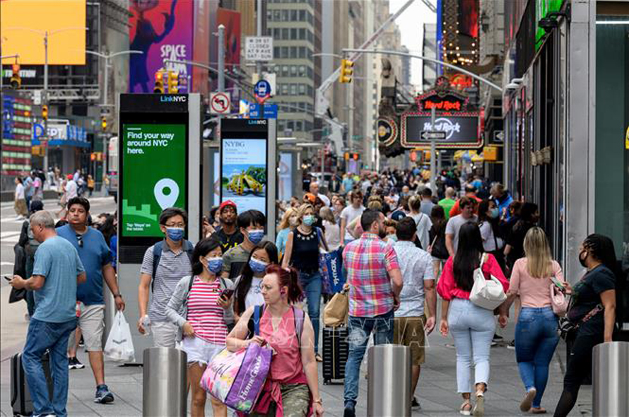 Người dân di chuyển trên đường phố ở New York, Mỹ ngày 13/7/2021. Ảnh: AFP/TTXVN