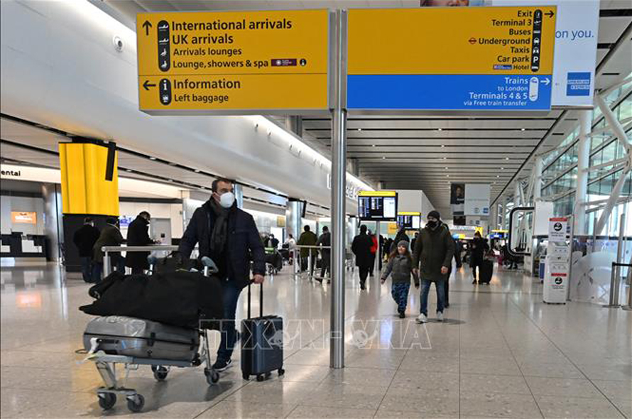 Hành khách tại sân bay Heathrow ở London, Anh ngày 14/2/2021. Ảnh: AFP/TTXVN