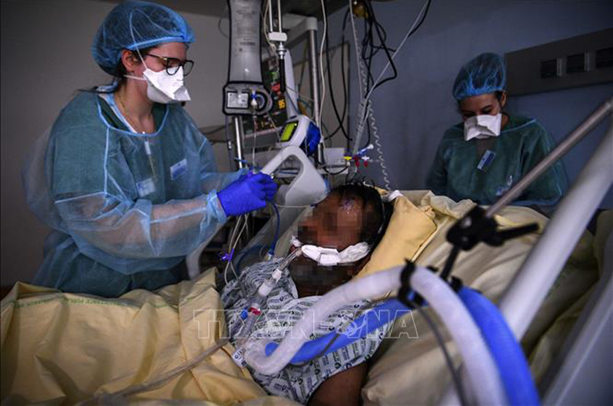 Nhân viên y tế điều trị cho bệnh nhân COVID-19 tại Paris, Pháp ngày 18/3/2021. Ảnh: AFP/TTXVN
