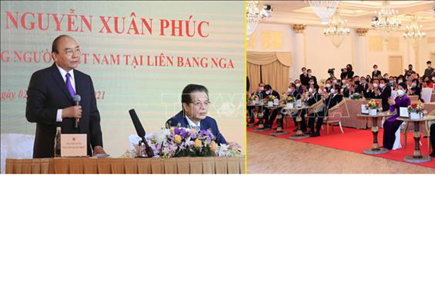 Chia sẻ với những khó khăn, vất vả của bà con trong giai đoạn đại dịch COVID-19, Chủ tịch nước Nguyễn Xuân Phúc bày tỏ vui mừng khi cộng đồng người Việt tại Liên bang Nga đã vượt qua giai đoạn khó khăn nhất của đại dịch. Chủ tịch nước cho biết, Đảng, Nhà nước và nhân dân Việt Nam quyết tâm khắc phục mọi khó khăn, thực hiện bằng được mục tiêu Đại hội đảng toàn quốc lần thứ XIII đã đặt ra là năm 2030 Việt Nam trở thành nước đang phát triển, có thu nhập trung bình cao; Đến năm 2045, trở thành nước phát triển, thu nhập cao.