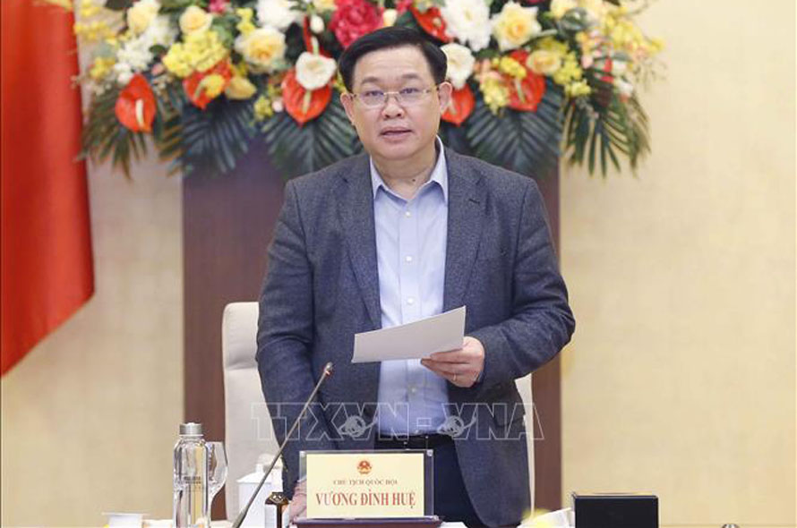 Chiều tối 3/12, tại Nhà Quốc hội, Chủ tịch Quốc hội Vương Đình Huệ chủ trì cuộc họp làm việc với Thường trực Ủy ban Xã hội và các cơ quan liên quan về việc Chính phủ trình Ủy ban Thường vụ cho phép thực hiện một số cơ chế, chính sách đặc biệt, đặc cách, đặc thù trong phòng, chống dịch COVID-19 để thực hiện Chiến lược tổng thể về phòng, chống dịch COVID-19.
