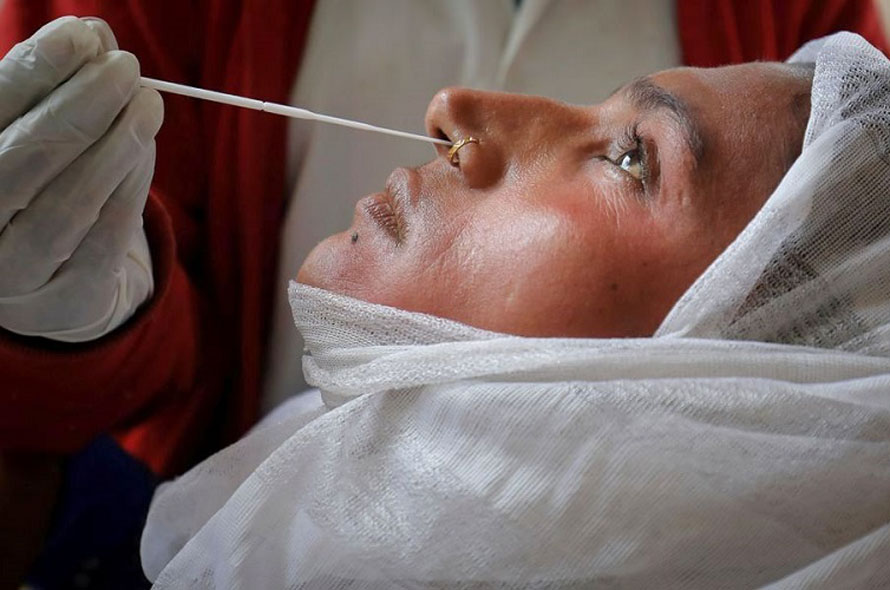 Lấy mẫu xét nghiệm Covid-19 tại 1 trung tâm y tế địa phương ở Ahmedabad, Ấn Độ, ngày 3/12/2021. (Ảnh: Reuters)
