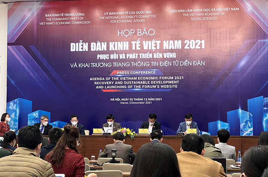 Chiều 2/12, Ban Tổ chức họp báo trong nước và quốc tế về chương trình Diễn đàn Kinh tế Việt Nam 2021. (Ảnh: DUY LINH và CTV)