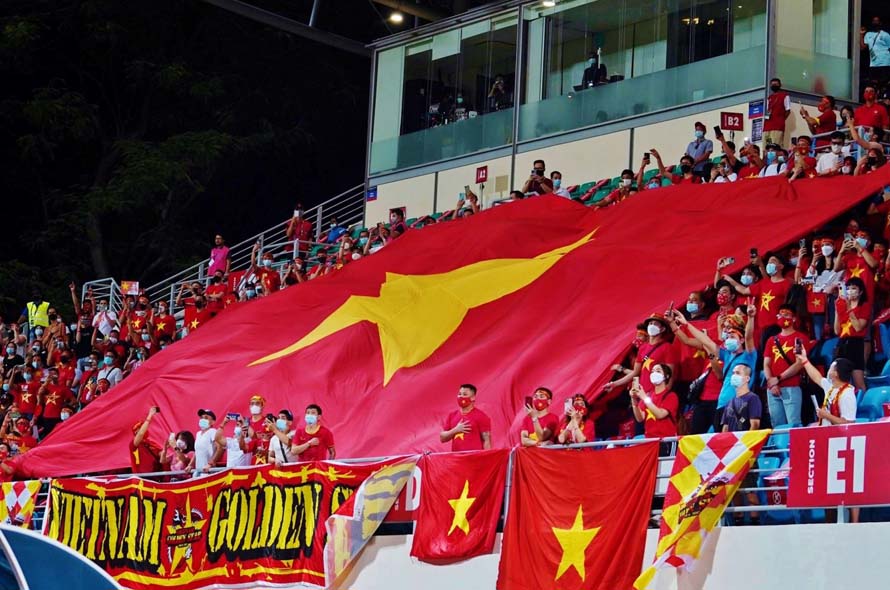 CĐV Việt Nam có mặt tại sân Bishan. Ảnh: VFF.