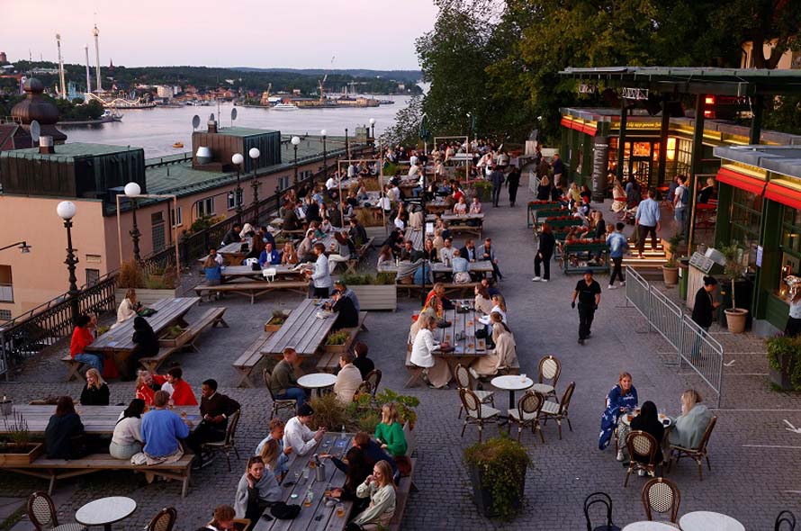 Thực khách tại 1 nhà hàng ngoài trời ở Stockholm, Thụy Điển, ngày 1/7/2021. (Ảnh: TT News/Reuters)
