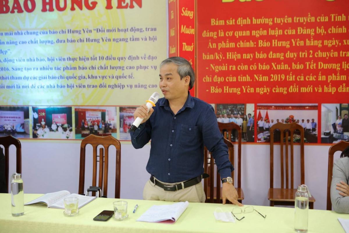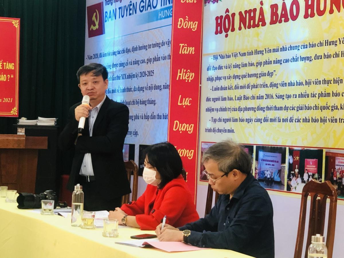 Nhà báo Phạm Thành, Phó Chủ tịch Thường trực HNB Hưng Yên phát biểu tại Hội thảo