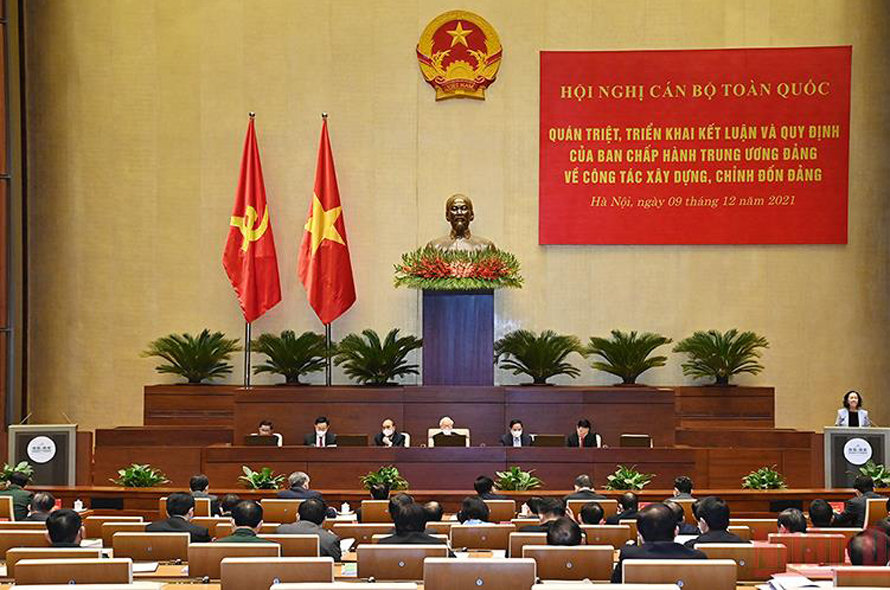 Sáng 9/12, Hội nghị cán bộ toàn quốc về quán triệt, triển khai Kết luận và Quy định của Ban Chấp hành Trung ương về công tác xây dựng, chỉnh đốn Đảng được tổ chức trực tiếp kết hợp trực tuyến từ Phòng họp Diên Hồng, tòa nhà Quốc hội đến các đảng ủy trực thuộc Trung ương, các tỉnh ủy, thành ủy, cấp ủy cấp huyện và cơ sở trong cả nước. Tổng Bí thư Nguyễn Phú Trọng dự, chủ trì, phát biểu chỉ đạo.