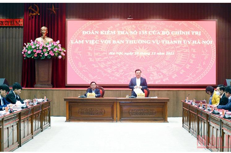 Chiều 10/12, Đoàn kiểm tra số 135 của Bộ Chính trị do đồng chí Trần Cẩm Tú, Ủy viên Bộ Chính trị, Bí thư T.Ư Đảng, Chủ nhiệm Ủy ban Kiểm tra Trung ương làm Trưởng đoàn đã có buổi làm việc với với Ban Thường vụ Thành ủy Hà Nội về kết quả kiểm tra trong lãnh đạo, chỉ đạo công tác nghiên cứu, học tập, quán triệt, tuyên truyền, cụ thể hóa và triển khai thực hiện Nghị quyết Đại hội XIII của Đảng.