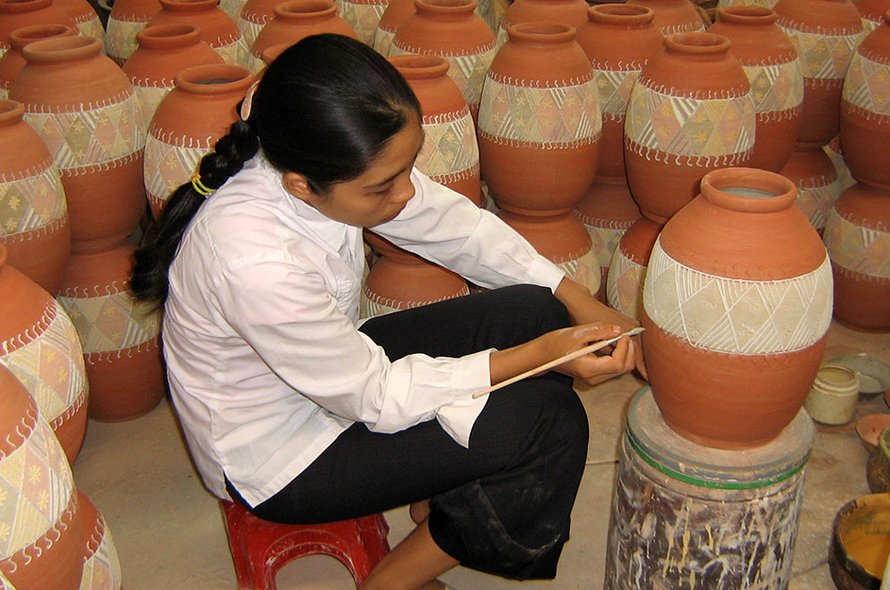 Ứng dụng họa tiết trang trí dân gian vào sản xuất gốm thương mại ở Bắc Giang.