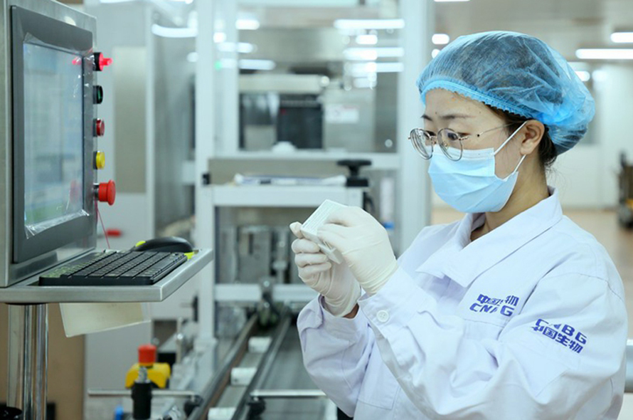 Một nhân viên đang kiểm tra bao bì hộp đựng vaccine ngừa COVID-19 của Sinopharm. Ảnh: Xinhua