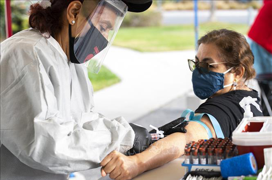 Nhân viên y tế tiêm vaccine phòng COVID-19 cho người dân tại Santa Monica, California, ngày 19/1/2021. Ảnh: AFP/TTXVN