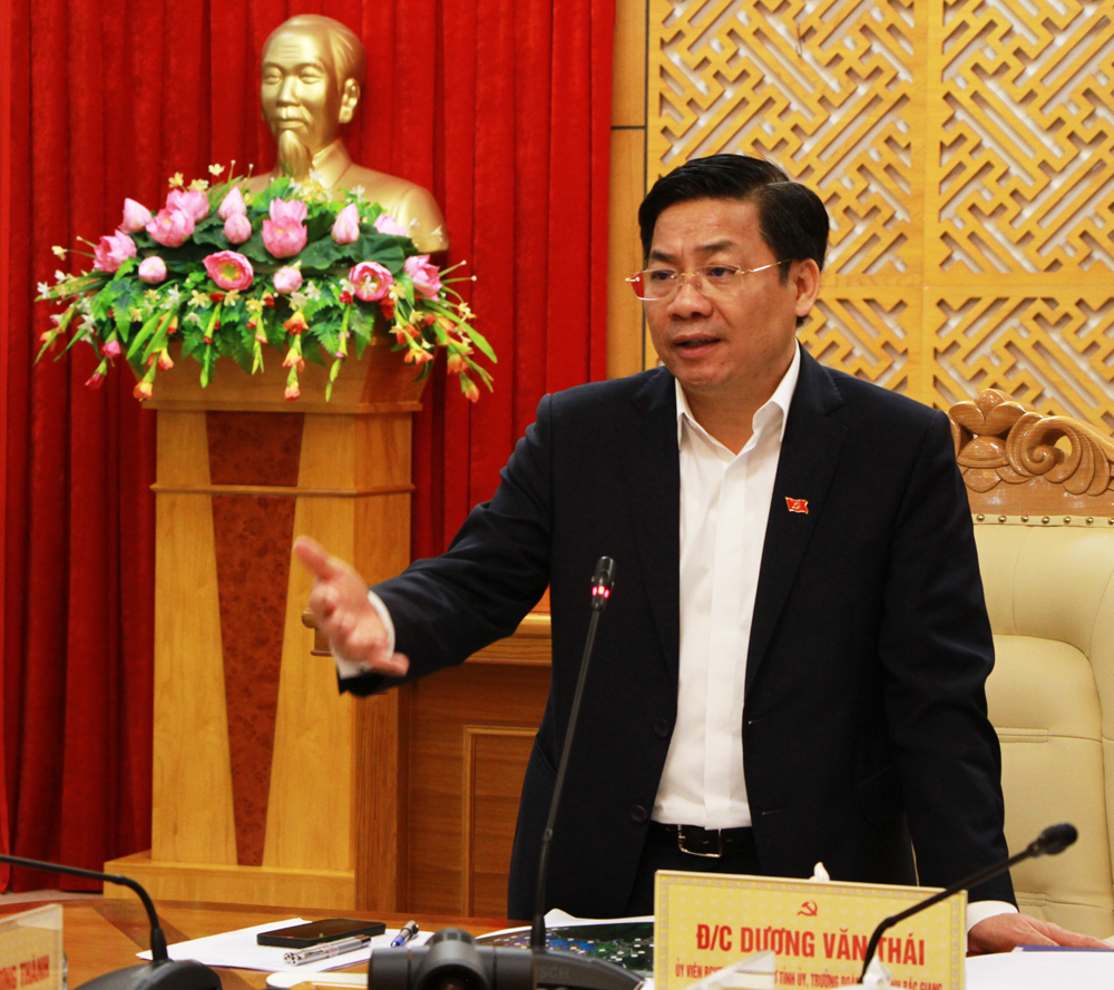 Ngày 16/12, Thường trực Tỉnh ủy tổ chức hội nghị cho ý kiến về việc xây dựng một số đồ án quy hoạch trên địa bàn tỉnh. Đồng chí Dương Văn Thái, Ủy viên T.Ư Đảng, Bí thư Tỉnh ủy, Trưởng đoàn ĐBQH tỉnh Bắc Giang chủ trì. Cùng dự có các đồng chí: Lâm Thị Hương Thành, Phó Chủ tịch Thường trực HĐND tỉnh; Lê Ô Pích, Phó Chủ tịch UBND tỉnh; đại diện lãnh đạo một số sở, ngành tỉnh.