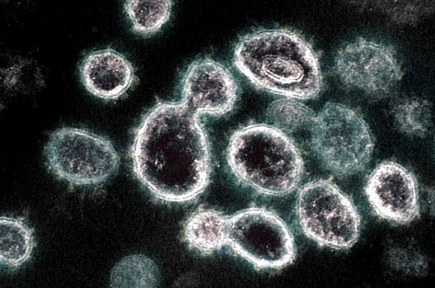 Hình ảnh virus SARS-CoV-2 hiện lên dưới kính hiển vi điện tử. Ảnh: AFP