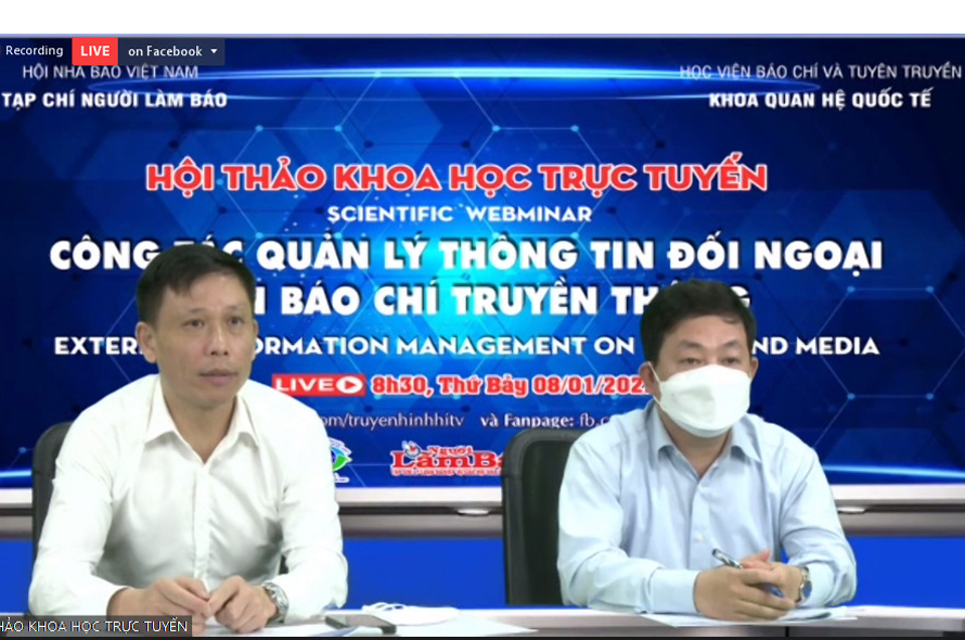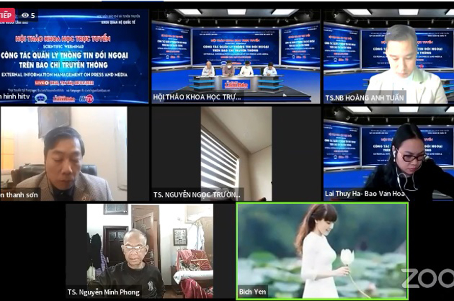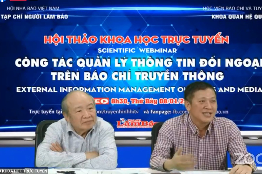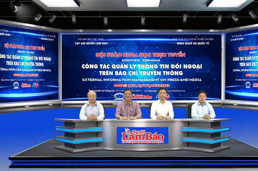 Ngày 8/01, tại Hà Nội, Tạp chí Người Làm Báo (Hội Nhà báo Việt Nam) phối hợp với Khoa Quan hệ Quốc tế (Học viện Báo chí & Tuyên truyền) và Truyền hình HITV/Truyền hình Cáp Hà Nội tổ chức Hội thảo khoa học trực tuyến "Công tác quản lý thông tin đối ngoại trên báo chí truyền thông".