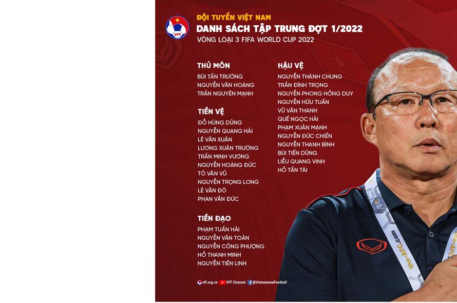 Ngày 7/1, Huấn luyện viên trưởng Park Hang-seo đã đề xuất triệu tập 30 cầu thủ vào danh sách đội tuyển Việt Nam, chuẩn bị cho chuyến đến làm khách trên sân đội tuyển Australia tại Vòng loại thứ ba FIFA World Cup 2022 khu vực châu Á. Đây cũng là đợt tập trung đầu tiên trong năm 2022 của đội tuyển Việt Nam.