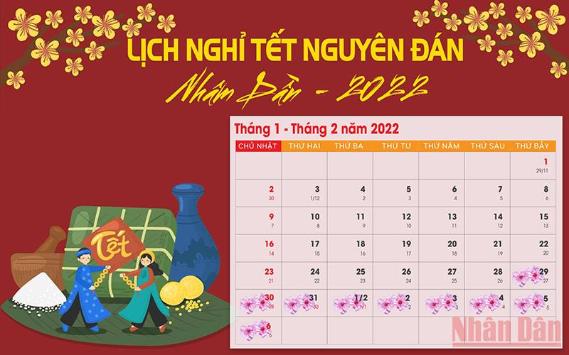 Lịch nghỉ Tết Nguyên đán Nhâm Dần 2022 với cán bộ, công chức - viên chức: Gồm 9 ngày, từ 29/1 đến 6/2.