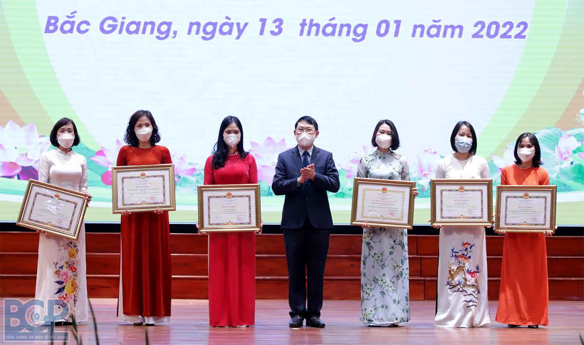 Chủ tịch UBND tỉnh Lê Ánh Dương trao tặng Bằng khen cho các tập thể, cá nhân.