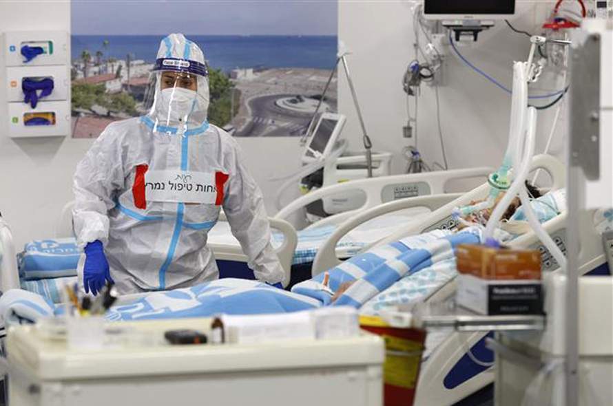 Nhân viên y tế điều trị cho bệnh nhân nhiễm COVID-19 tại bệnh viện ở Haifa, Israel. Ảnh: AFP/TTXVN