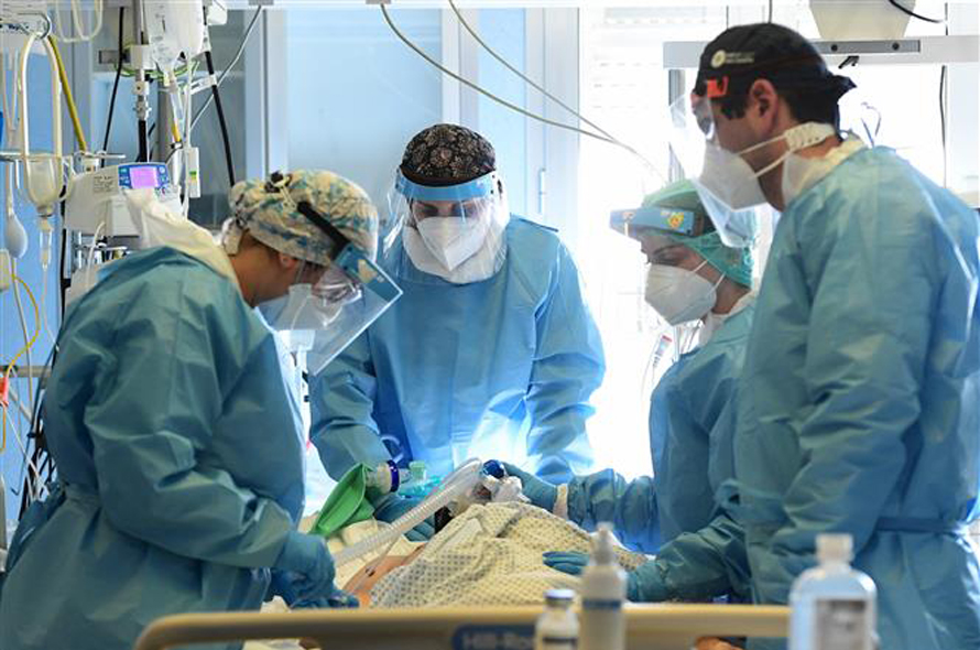 Nhân viên y tế điều trị cho bệnh nhân COVID-19 tại bệnh viện ở Cremona, Italy ngày 11/1/2022. Ảnh: AFP/TTXVN