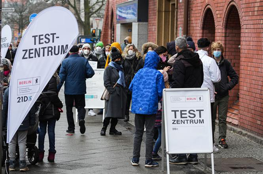Người dân chờ xét nghiệm COVID-19 tại Berlin, Đức ngày 12/1/2022. Ảnh: THX/TTXVN