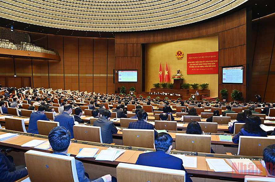 Hội nghị cán bộ toàn quốc quán triệt, triển khai thực hiện Kết luận và Quy định của Ban Chấp hành Trung ương về xây dựng, chỉnh đốn Đảng ngày 9/12/2021. (Ảnh minh họa: Hải Nguyên)