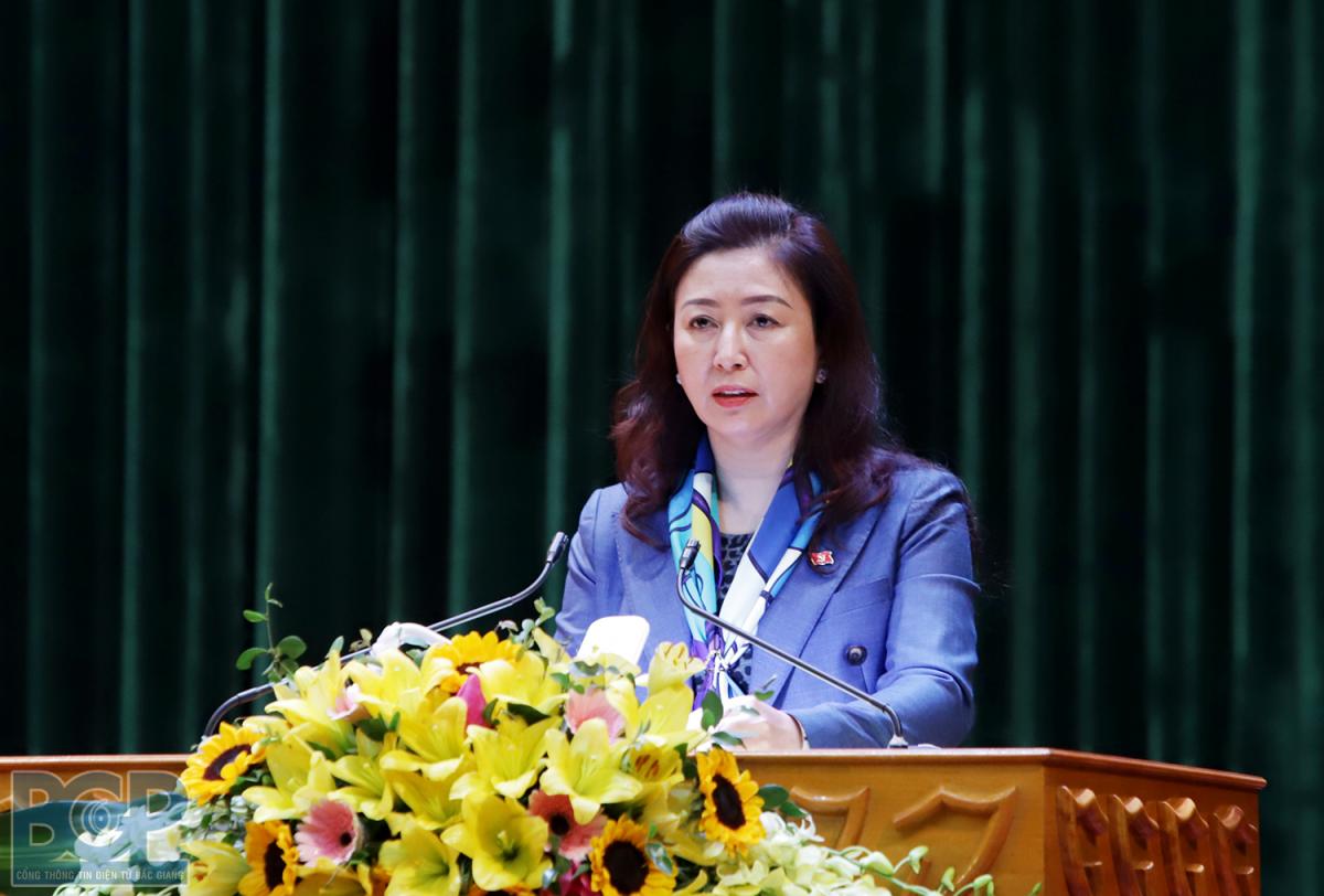 Báo cáo tại hội nghị, Phó Bí thư Thường trực Tỉnh ủy Lê Thị Thu Hồng cho biết, trong năm 2021, trong bối cảnh đặc biệt khó khăn do dịch Covid-19, nhất là đợt dịch Covid-19 lần thứ tư bùng phát, Bắc Giang là tâm dịch của cả nước; song với sự quyết tâm, quyết liệt, đổi mới sáng tạo trong lãnh đạo, chỉ đạo của các cấp ủy, chính quyền, sự đoàn kết, chung sức, đồng lòng của cả hệ thống chính trị, cộng đồng doanh nghiệp và Nhân dân các dân tộc tỉnh nhà; Bắc Giang đã nhanh chóng kiểm soát, đẩy lùi dịch bệnh, đồng thời thực hiện có hiệu quả nhiệm vụ phát triển kinh tế - xã hội; Bắc Giang là điểm sáng về thực hiện “mục tiêu kép” của cả nước.