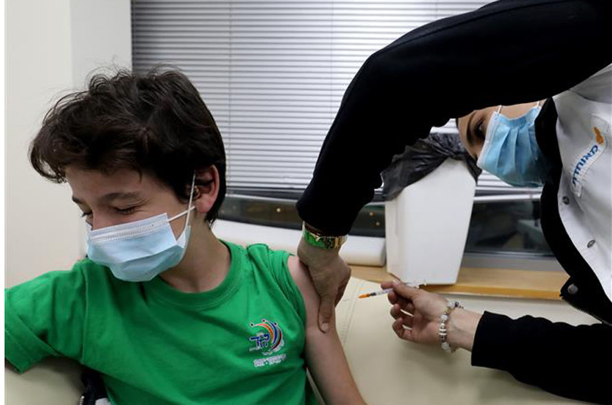 Nhân viên y tế tiêm vaccine phòng COVID-19 cho trẻ em tại thành phố Modiin, Israel ngày 12/1/2022. Ảnh: THX/TTXVN